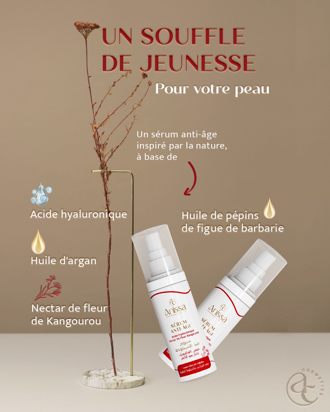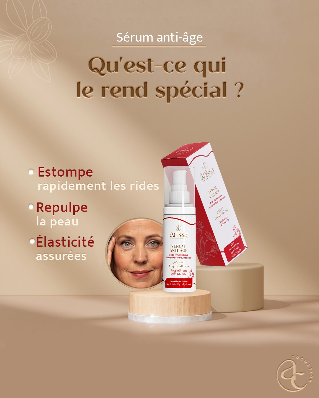 Notre sérum anti-âge à l’Acide hyaluronique et au Nectar de fleur de Kangourou diminue rapidement l’apparence des rides et le relâchement de la peau, lui redonnant ainsi toute son élasticité.